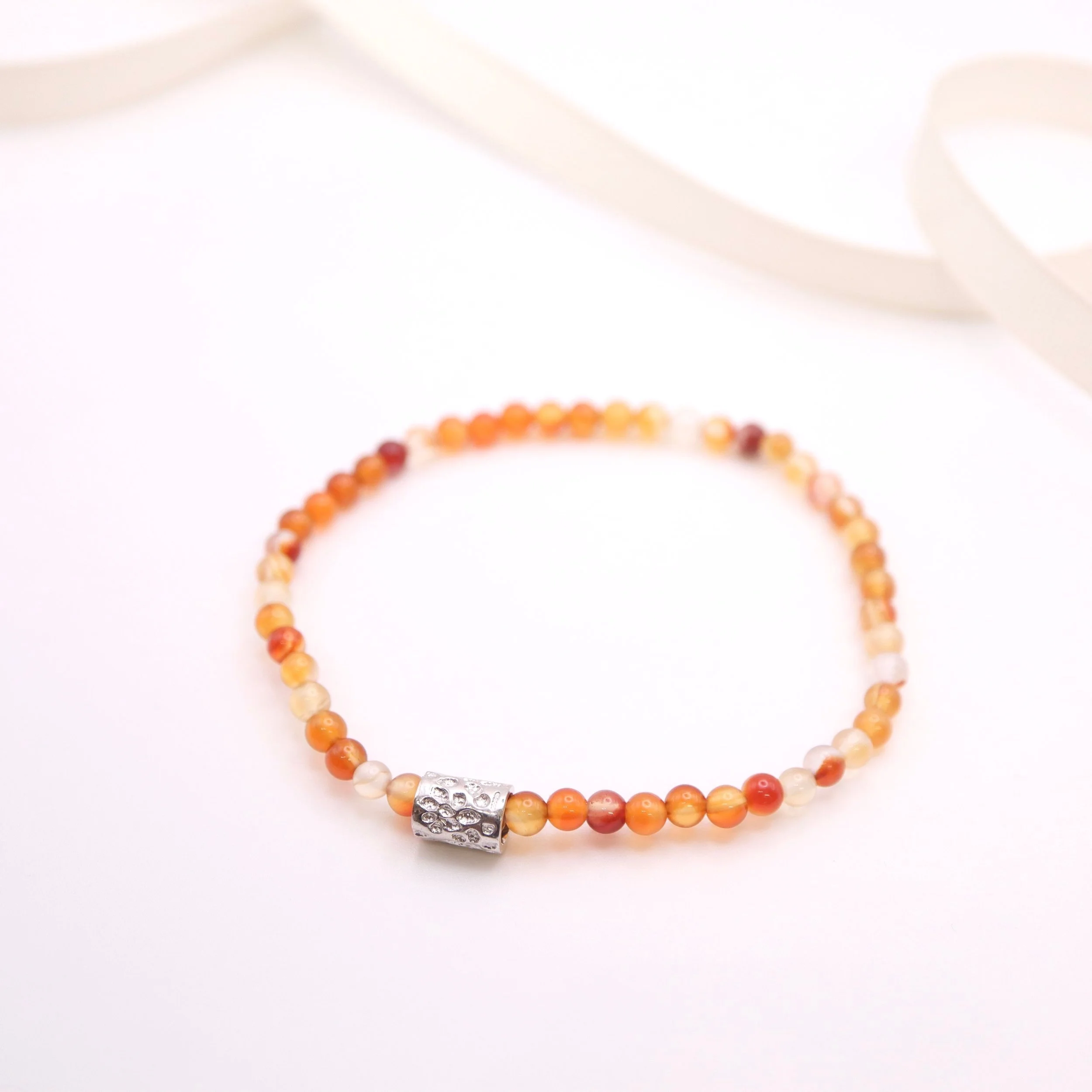 Inspired by the soft elegance of a Valencian sunrise, our Gemstone Beaded Bracelets features delicate beads and a beautifully textured silver charm, reminiscent of intricate castle stonework.